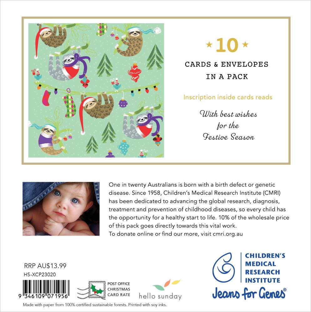 Jeans for Genes Hanging Sloths Charity Boxed Christmas Cards