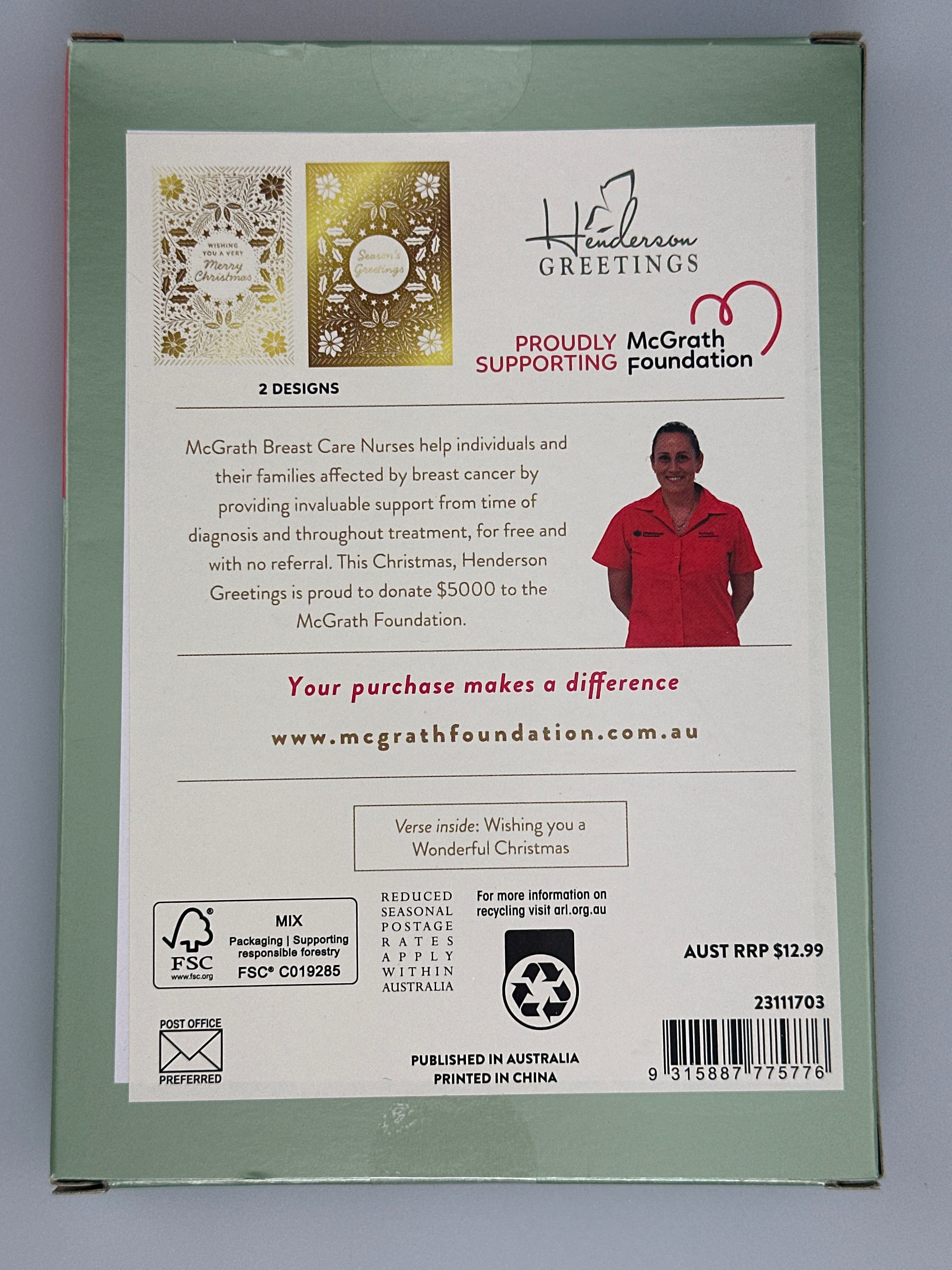 We are proud to be supporting the McGrath Foundation Charity with the purchase of these Henderson Christmas cards.