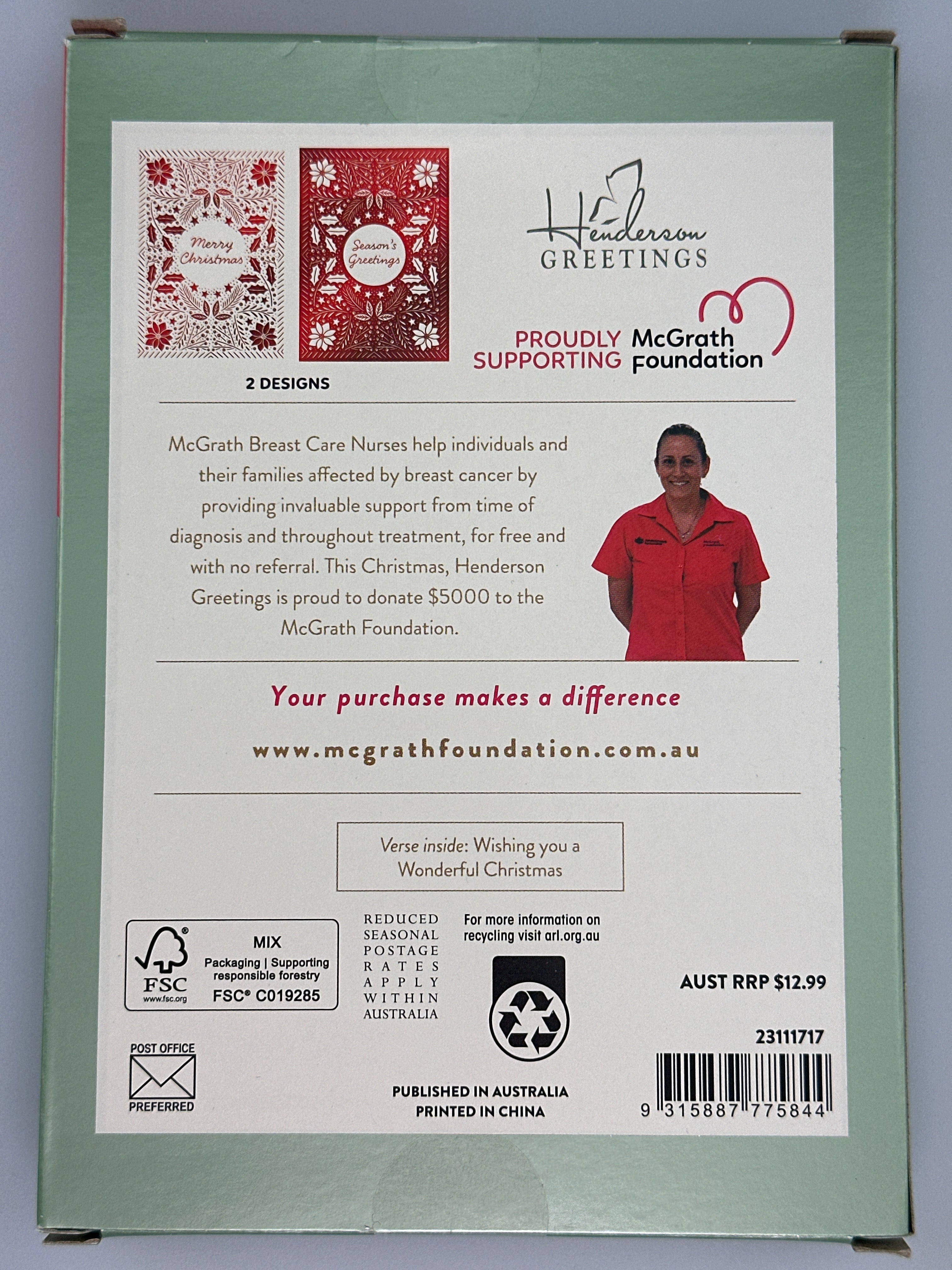 We are proud to be supporting the McGrath Foundation Charity with the purchase of these Henderson Christmas cards.
