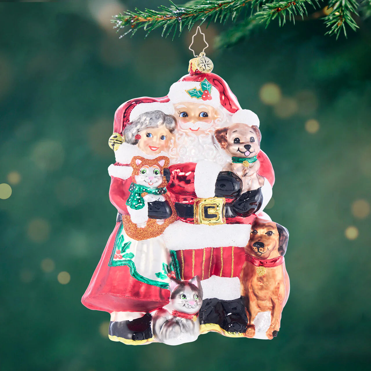 Christopher Radko Holiday Paws with Mr. & Mrs. Claus Glass Christmas Ornament