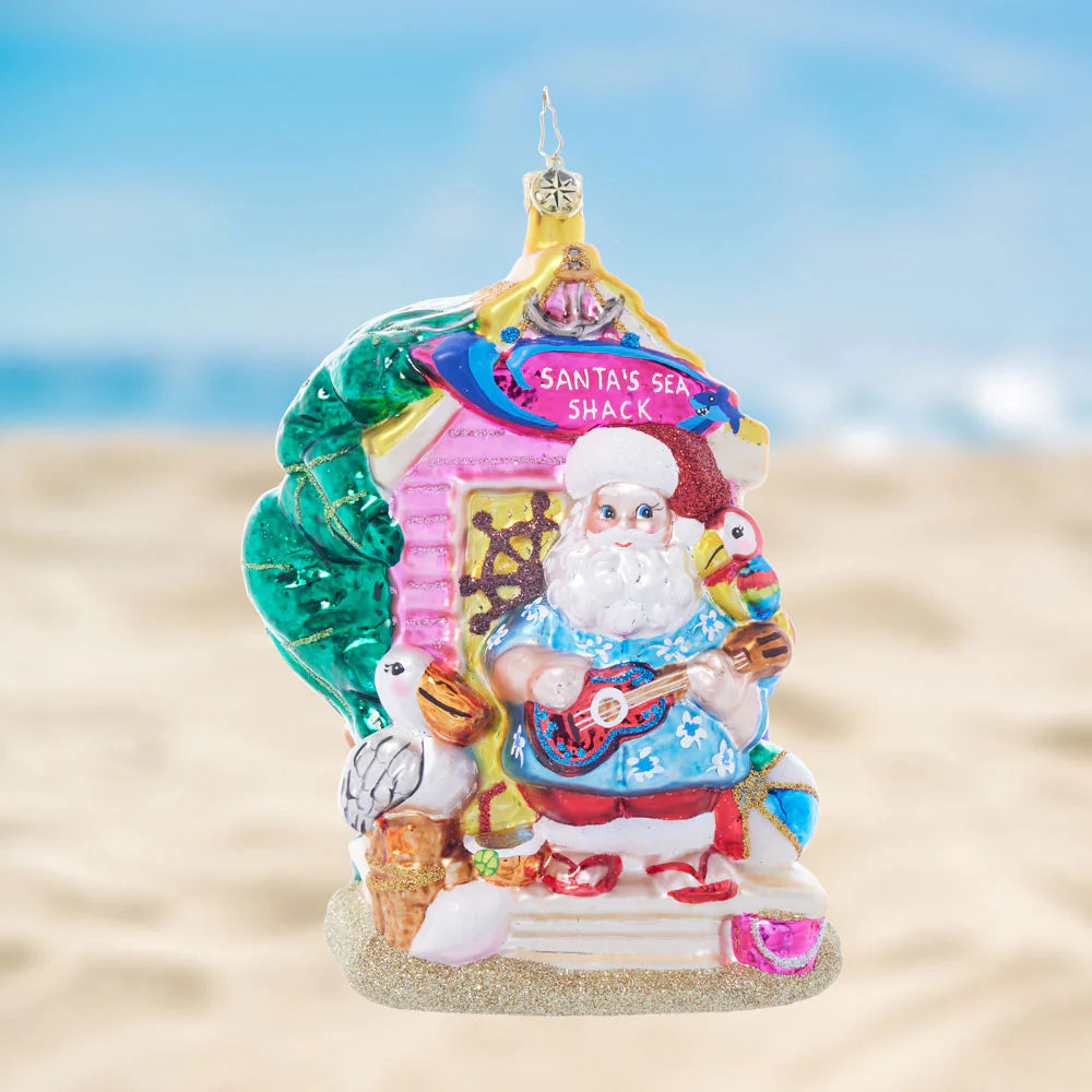 Christopher Radko Santa's Seaside Shack Glass Christmas Ornament