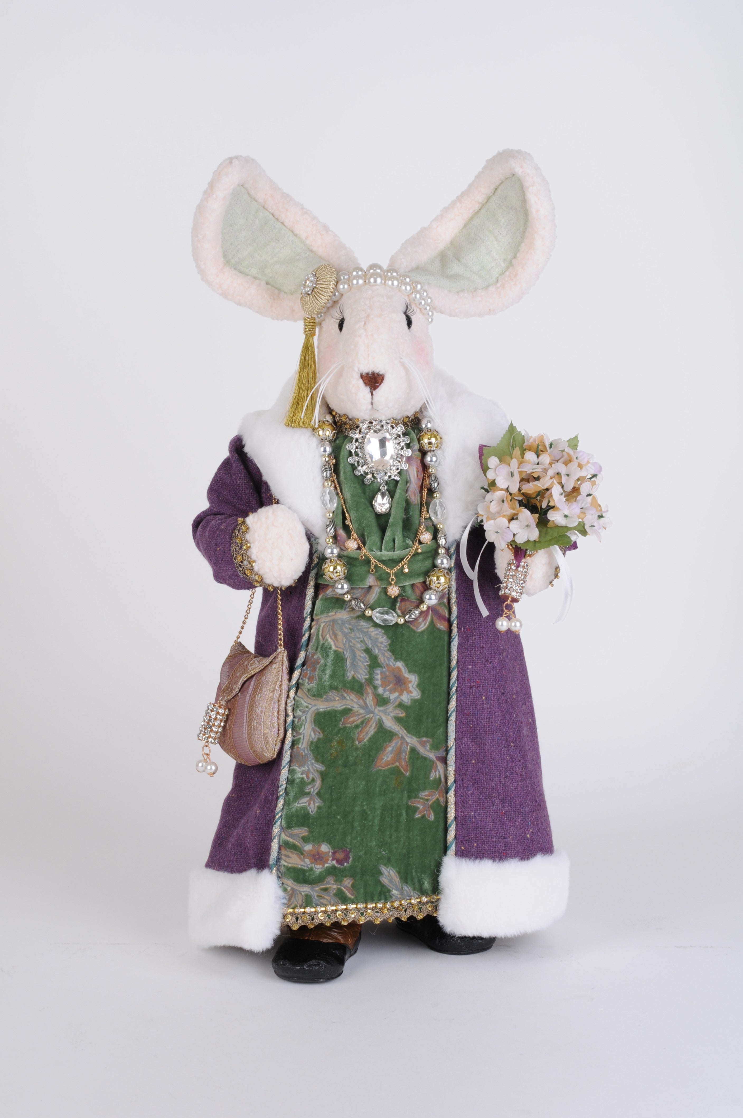 With this collectible's soft-fluffy exterior, elaborate Victorian attire styled with a violet floor length coat accented with beads and jewels; she's created full of personality and will add character and style to any home.