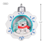 Expand your A World Within collection with this adorable miniature Christmas tree ornament. A stately snowflake is the setting for a friendly little polar bear who wears a cheery red scarf tucked around his neck. Glitter and pearlescent paint accents add shimmer to this cute Christmas design.