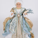 The quality is unmatched with this decorative piece’s hand-painted face, inset eyes, unique fabric, and detailed accessories. With this item's nautical design, shiny ribbons, and elegant touch, she's sure to add character and style to any seaside home.