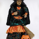 Karen Didion Halloween 6 foot Sitting Witch w/ Lighted Pumpkin