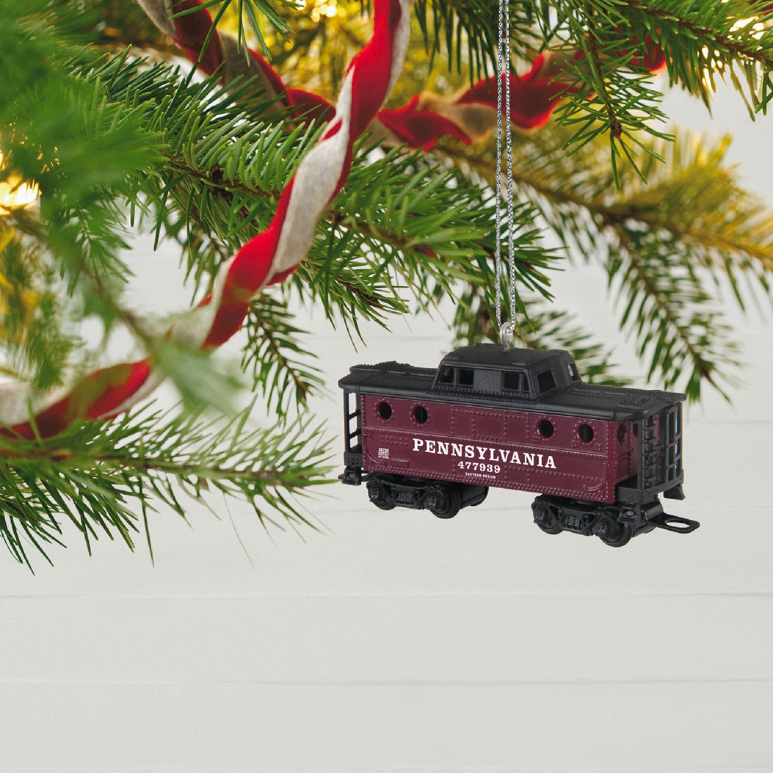 Bringing up the rear of this year's Lionel Trains Keepsake Ornaments is this crewed railroad car, a fixture on every freight train until the 1980s. Boasting the logo and name of the Pennsylvania Railroad, this die-cast metal caboose Christmas tree ornament features plenty of accurate details and wheels that turn.